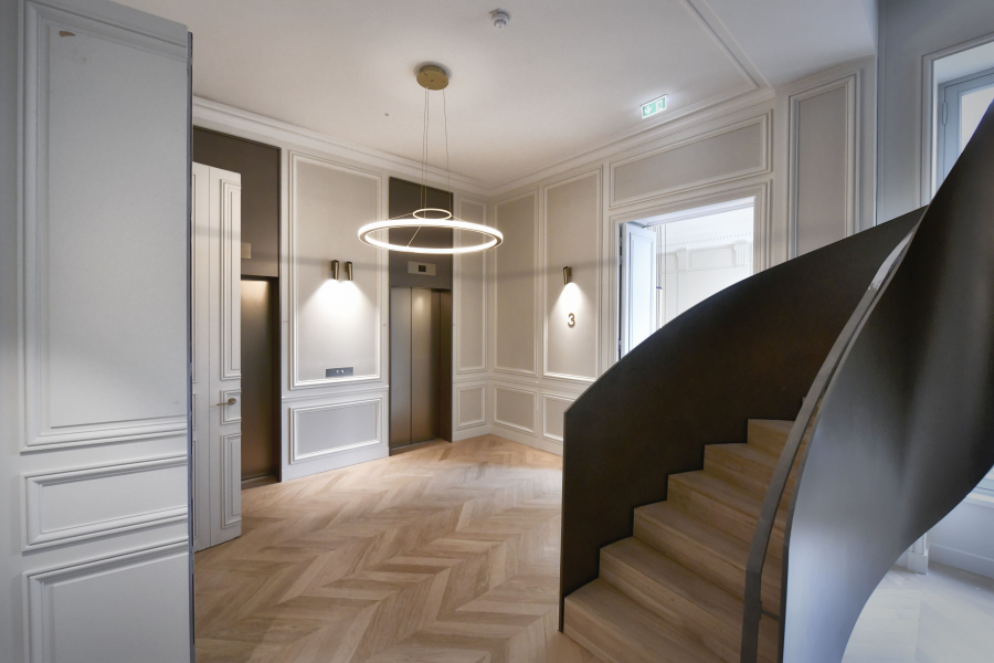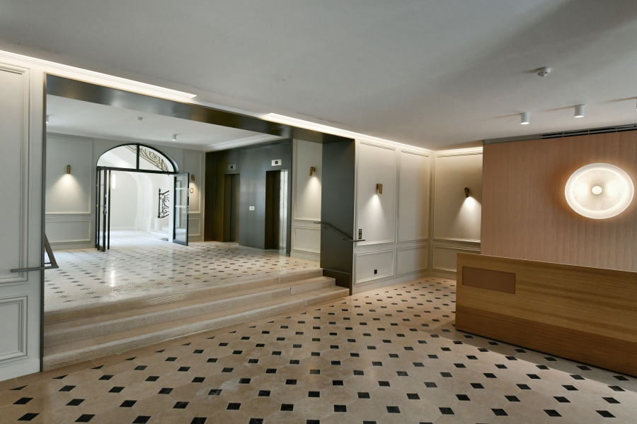 Le projet de restructuration concerne deux hôtels jumeaux datant du XVIIIe siècle, situés rue Saint-Florentin à Paris. Au cœur du quartier Saint-Honoré, une élégante rénovation a été réalisée pour transformer cet ensemble patrimonial en bureaux haut de gamme.